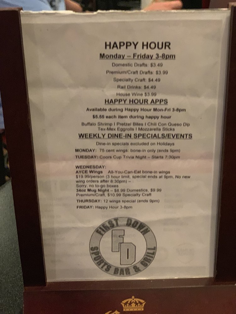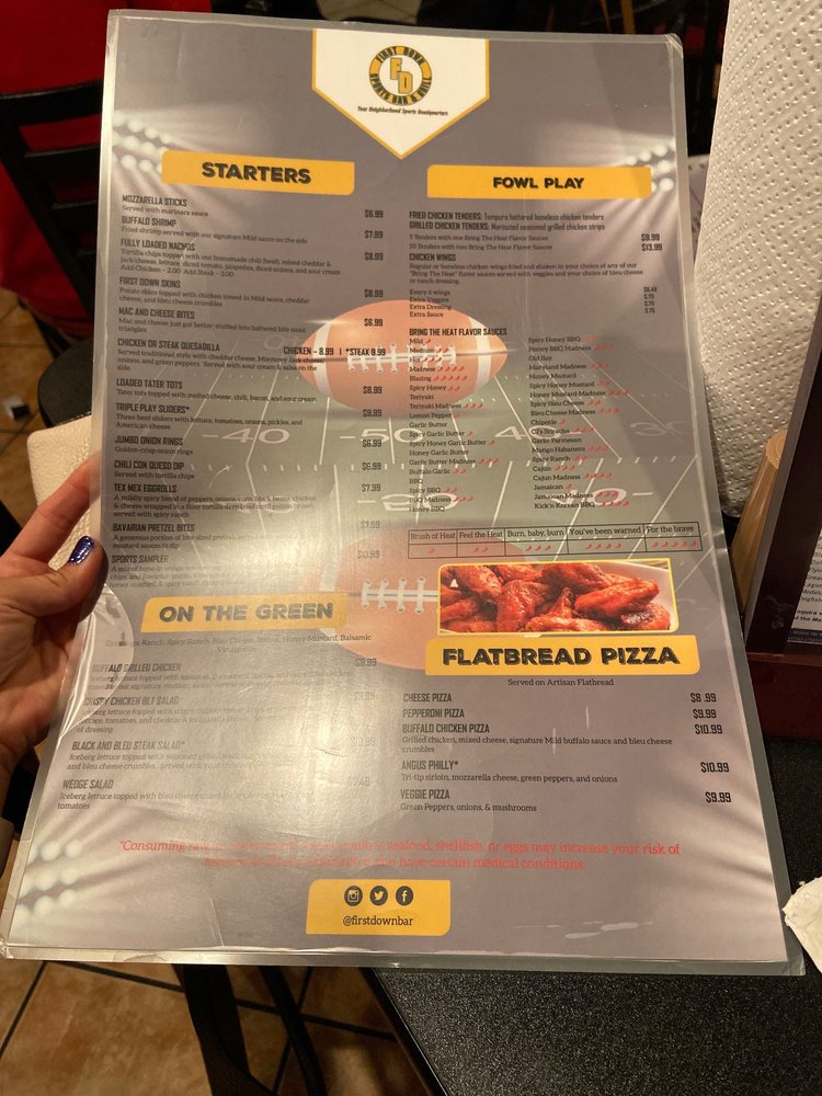 First Down Sports Bar & Grill in Arlington, VA offers a divey, casual atmosphere with outdoor seating and a full bar, making it the perfect spot for a night out. The menu features a variety of mouth-watering starters like Buffalo Shrimp and Loaded Nachos, along with delicious burgers like the Coyote Burger and The Ballston Boss. Customer reviews rave about the flavorful Chicken Wings, especially the boneless Ghost Pepper option. The spacious interior is great for watching sports on multiple TVs, and the friendly staff ensures quick service. Whether you're a fan of spicy wings or hearty burgers, First Down Sports Bar & Grill is a must-visit for anyone craving delicious American comfort food in a vibrant sports bar setting.